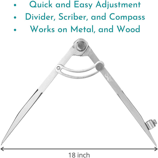 Professional Compass for Woodworking, 8 Inch Compass with Wing, Large Compass for Geometry, Compass Drawing Tool, Woodworking Compass, Pencil Compass for Carpenter, Drafting, Drawing Compass
