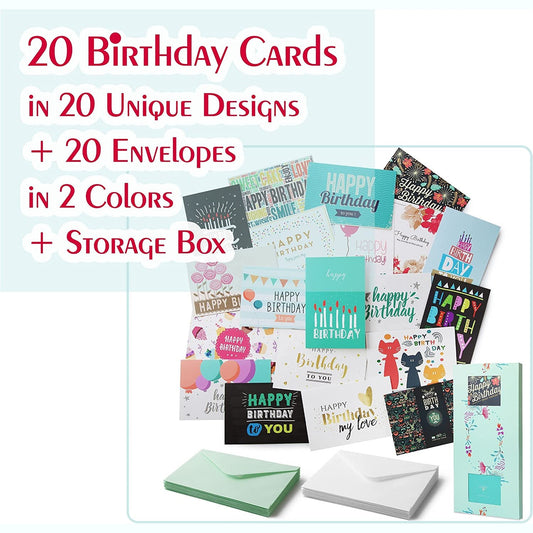 Mr. Pen Assorted Color Birthday Cards, 20 Pack, 4 x 6 Inches, Blank Inside, Includes Envelopes