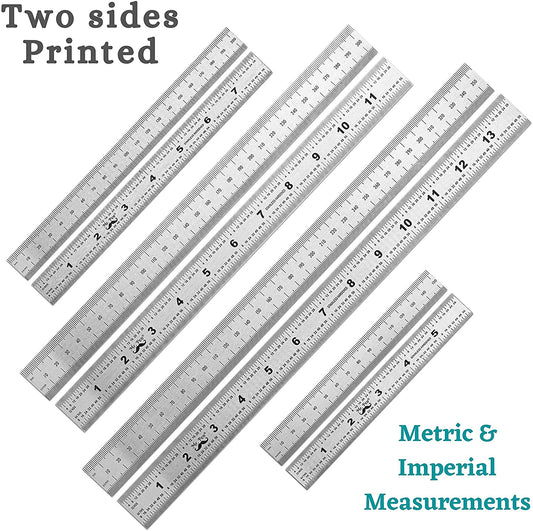 Machinist Ruler, 4 Pack (6, 8, 12, 14 inch), Metric Ruler, Millimeter Ruler, (1/64, 1/32, mm and .5 mm), 6 inch Ruler, Stainless Steel Ruler