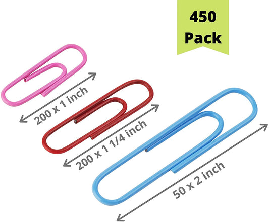 Paper Clips, 450 Pack, Assorted Colors, Paper Clips Assorted Sizes, Large Paper Clips, Paperclips, Paperclips Assorted Size, Colored Paper Clips, Colorful Paper Clips, Metal Paper Clips