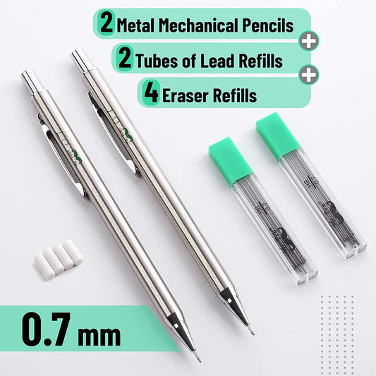 Metal Mechanical Pencils, 0.7mm, 2 Pack, Lead Pencil, Metal Mechanical Pencil, Metal Mechanical Pencils 0.7, Drafting Mechanical Pencils, Mechanical Pencil Metal, Mechanical Pencils .7
