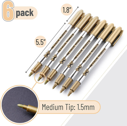 Metallic Paint Markers, 6 Pack, Gold Paint Marker, Gold Ink Pen, Gold Markers Permanent Metallic, Gold Metallic Marker, Gold Marker, Gold Pen, Metallic Markers, Gold Pens, Gold Metallic Pen