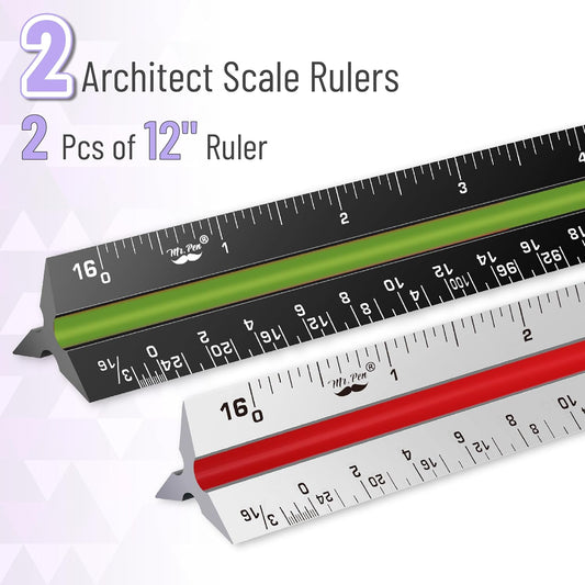 Architectural Scale Ruler, 12 Inch, 2 pcs, Black & White, Scale Ruler Contractor, Scale Ruler for Blueprints, Architect Ruler, Drafting Ruler, Architect Scale, Architectural Ruler