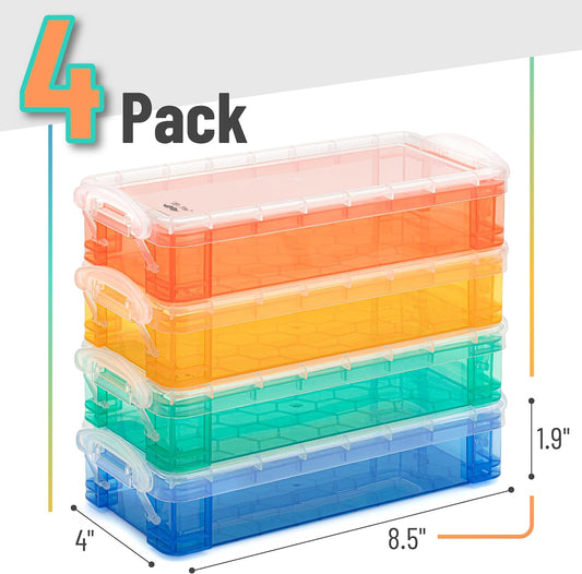 Pencil Box, 4 Pack, Assorted Color, Plastic Pencil Box Case, Pencil Case, Crayon Box, Pencil Case for Kids, Clear Pencil Case, Plastic Pencil Case, Hard Pencil Case, School Supply Box