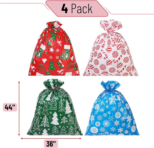 Extra Large Christmas Gift Bags, 4-Pack (36”x44”) – Jumbo Christmas Sacks for Big Gifts, Durable and Festive Holiday Gift Bags