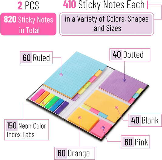 Sticky Note Set, 2 Sets, 820 pcs, Vibrant Colors, Sticky Notes Tabs, Divider Sticky Notes, Office Supplies, Planner Sticky Notes, Sticky Note Dividers Tabs, Book Notes, Bible Sticky Notes