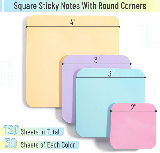 Sticky Note Set, 4 Pads, 120 Sheets, Assorted Sizes, Round Corner Colored Sticky Notes, Colorful Sticky Note, Sticky Pads, Colorful Sticky Notes Bulk, Stick Notes, Sticky Note Pad