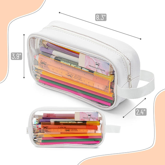 Clear Pencil Pouch, White, Clear Pencil Case, Pencil Bags, Clear Pouch, Pencil Case for Kids Pencil Case, Clear Makeup Pouch, Adults & Kids Pencil Pouch, Pencil Cases, Clear Make Up Bag