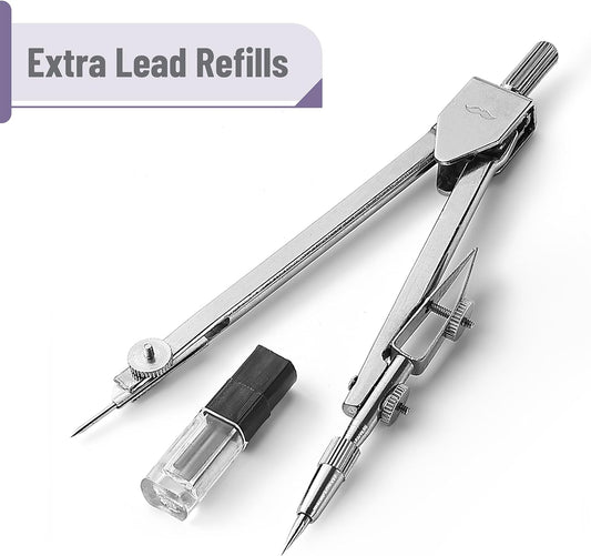 Compass for Geometry, Silver with Extra Leads, Metal Compass Drawing Compass, Geometry Compass, Math Compass, Compass Drawing, Drafting Compass, Drafting Tools