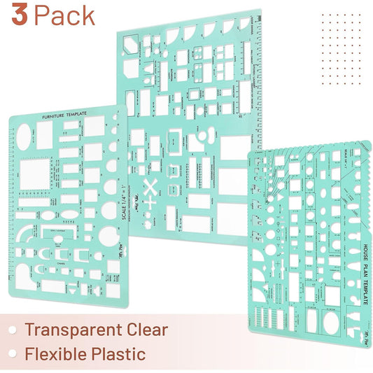 House Plan, 3 Pack, Green, Interior Design and Furniture Templates, Drafting Tools and Ruler Shapes for Architecture, Drafting Tools, Architecture Supplies, Drafting Templates