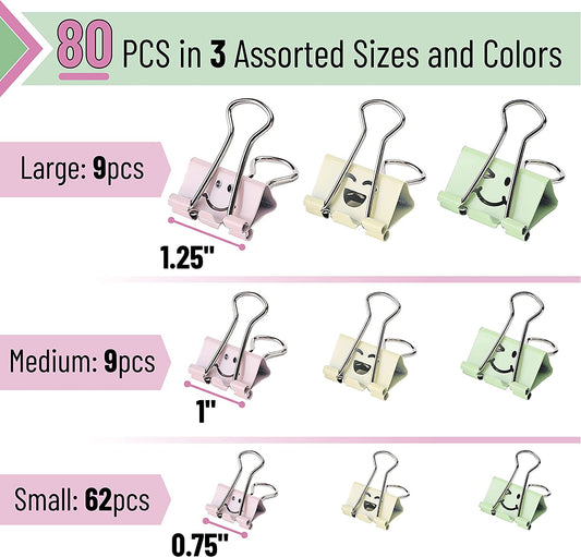 Cute Binder Clips, 80Pcs, Assorted Colors and Sizes, Binder Clips Assorted Sizes, Binder Clips Medium, Small Binder Clips, Clips Office Supplies, Cute Paper Clips
