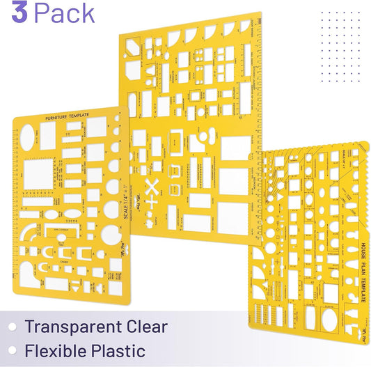 House Plan, Interior Design and Furniture Templates, Drafting Tools and Ruler Shapes for Architecture - Set of 3