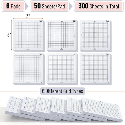 Graph Paper Sticky Notes, 6 Pads, 3x3 Inch, Graph Sticky Notes, Math Graph Paper, Graphing Sticky Notes, Grid Sticky Notes, Grid Notepad, Mini Graph Paper