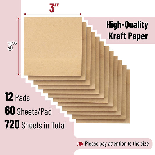 Sticky Notes, 3”x3”, 12 Pads, Kraft Colors Sticky Notes, Sticky Note, Self-Stick Note Pads, Sticky Pads Sticky Notes Aesthetic, Colorful Sticky Notes, Sticky Notes Bulk Sticky Notes
