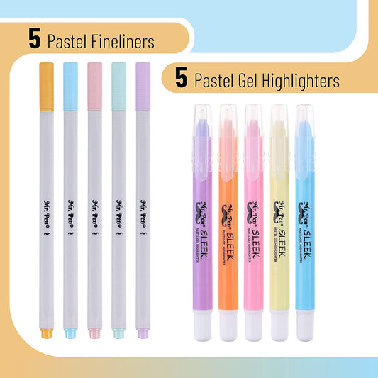 Bible Gel Highlighters and Fineliner Pens No Bleed, Pastel Colors, 10 Pack, Bible Journaling Kit, Bible Highlighters and Pens No Bleed, Bible Pens, Gel Highlighters, No Bleed Highlighters