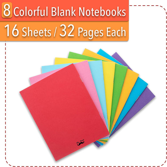 Colorful Blank Books, 4.2 x 5.5 Inches, 32 Pages, 8 Pack, Blank Notebooks for Kids, Mini Notebooks for Kids, Mini Journal for Students, Blank Journal for Kids, Unlined Notebook, Kids Journal