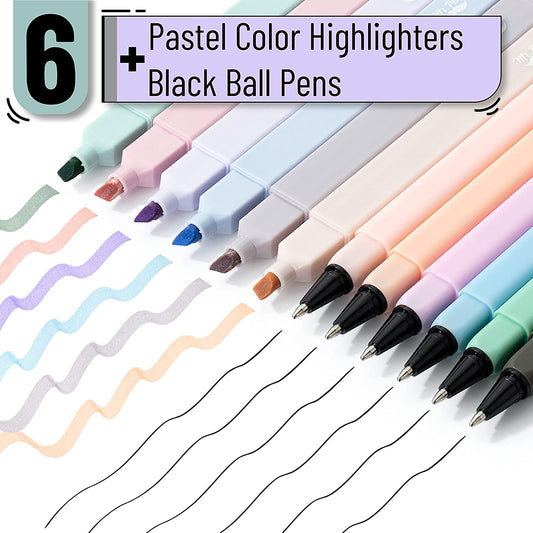 Aesthetic Highlighters and Pens No Bleed, 12 Pack, Pastel Color, Black Ink, No Bleed Highlighters for Bibles