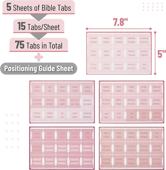 Bible Tabs, 75 Tabs, Pink Shades, Laminated Bible Tabs for Women and Men, Bible Tabs for Study Bible, Bible Index Tabs, Bible Book Tabs, Bible Labels Tabs, Mr Pen Bible Tabs