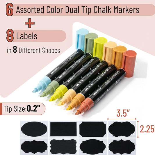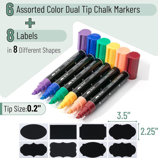 Chalk Markers, 6 Pack, Assorted Colors, 8 Labels, Chalkboard Markers, Liquid Chalk Markers for Chalkboard, Chalk Pens, Chalk Marker, Glass Markers, Liquid Chalk Markers Erasable