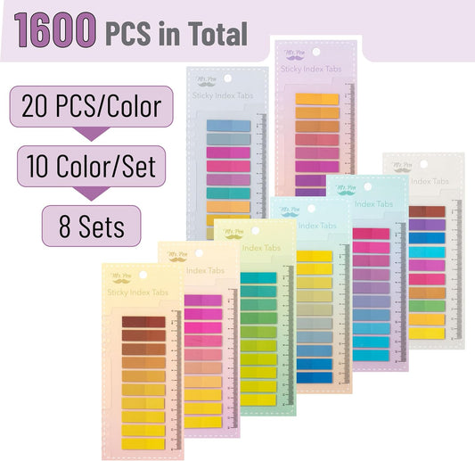 Sticky Tabs - 1600 Pcs Colorful Transparent Book Tabs, Sticky Note Tabs, Page Markers, Book Markers, Page Tabs, and Annotating Sticky Tabs for Books