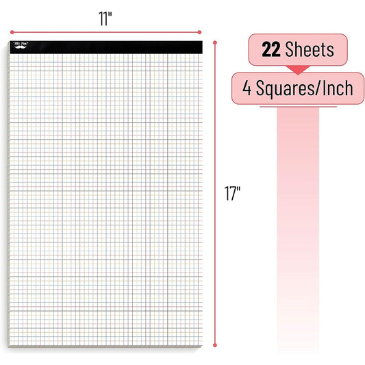 Graph Paper, 22 Sheets, 17"x11", 4x4 (4 Squares Per Inch), Colored Lined, graphing paper, grid paper, graph paper pad, 1/4 graph paper 1/4 inch grid, drafting paper, large graph paper