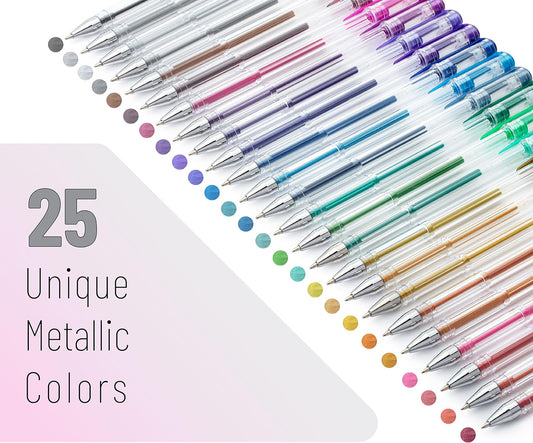 Metallic Gel Pens, 25 Unique Metallic Colors, Gel Pens for Adult Coloring Book, Gel Pen Set, Gel Pens Colored Gel Pens for Coloring, Colored Pens Gel, Coloring Pens for Adult Coloring Books