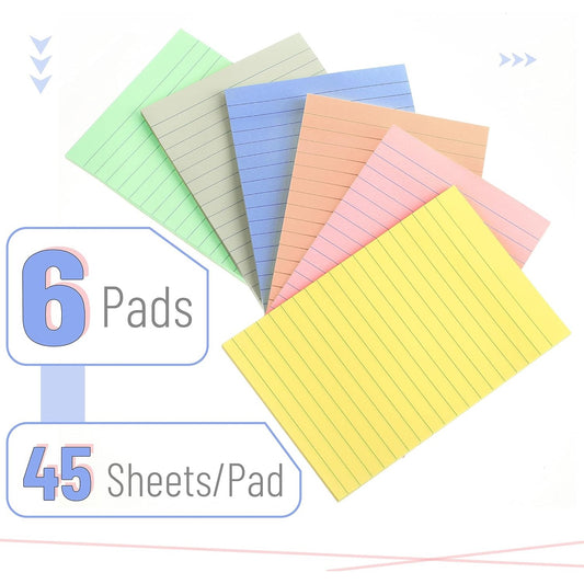 Lined Sticky Notes 4x6, 6 Pads, 45 Sheet/Pads, Morandi Colors, Sticky Notes with Lines, Sticky Note Pads, Sticky Pads, Sticky Notes Lined, Colorful Sticky Notes, Mr Pen Sticky Notes