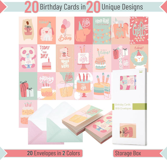 Mr Pen Assorted Birthday Cards with Envelopes, 20 Pack, 4 x 6 Inches, Birthday Cards Pack, Bulk Birthday Cards, Birthday Card Pack, Box of Birthday Cards, Greeting Cards Birthday