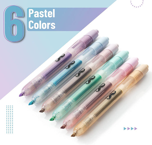 Highlighters, 6 Pack, Pastel Colors, Retractable Highlighters, Retractable Markers, Click Highlighters, Retractable Highlighters Assorted Colors, Highlighters Retractable, Click Markers