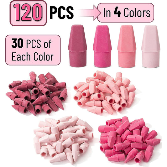 Pencil Erasers Toppers, 120 Pack, Pink Shades, Erasers for Pencils, Pencil Top Erasers, Pencil Eraser, Eraser Pencil, Pencil Cap Erasers, Eraser Caps, Eraser Tops, Pencil Topper Erasers