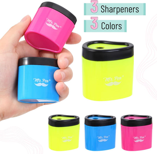 Mr. Pen- Pencil Sharpeners Manual, 3 Pack, Colorful Handheld Pencil Sharpener