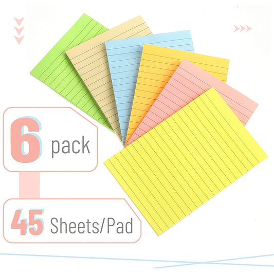 Lined Sticky Notes 4"x6", 6 Pads, 270 Sheets, Pastel Colors, Ruled Sticky Note Pads for To-Do Lists & Reminders