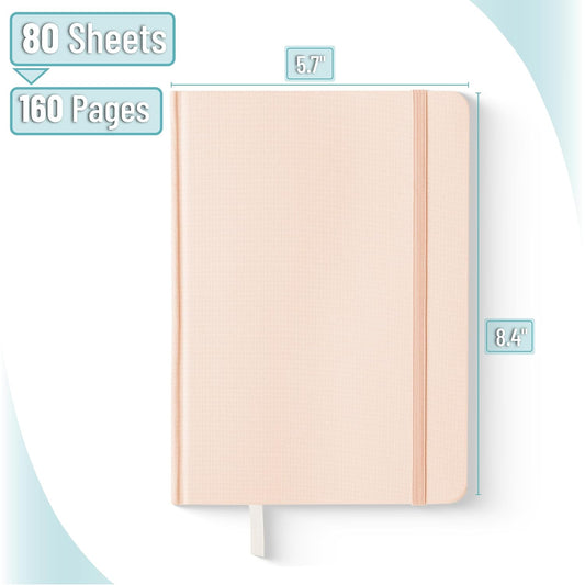 Mr. Pen- Dotted Journal Notebook, 5.7"x8.3", 160 Pages, Fabric Hardcover, Soft Blush Bullet Journal Notebook