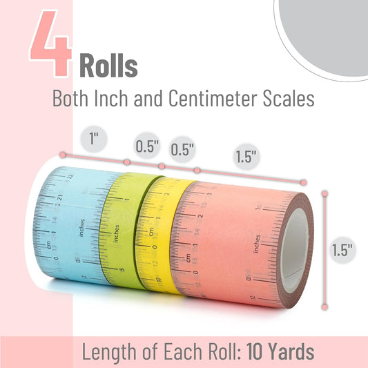 Ruler Washi Tape, 4 Pack, Assorted Sizes, Ruler Tape, Tape Ruler, Tape Measure Masking Tape, Washi Tape Set, Decorative Tape, Washi Tape, Scrapbook Tape