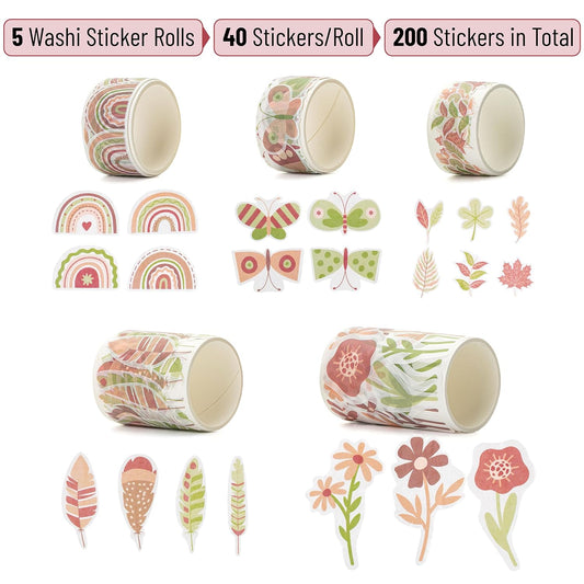 Washi Tape Stickers, 5 Rolls, 40 Stickers/Roll, Planner Washi Tape, Transparent Washi Tape, Decorative Tape, Washi Tapes, Cute Washi Tape, Cute Tape, Colored Tape, Scrapbook Tape, Craft Tape