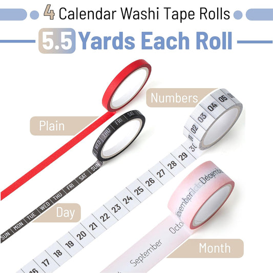 Calendar Tape Set, 4 Styles, Number Washi Tape, Days of The Week Washi Tape Calendar Washi Tape Numbers, Planner Washi Tapes, Decorative Tape, Washy Tape, Washi Tape Set, Scrapbook Tape