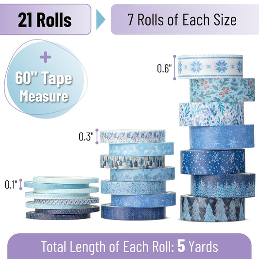 Mr. Pen- Washi Tape Set, 21 Rolls, Assorted Sizes, Ocean Breeze, Washi Tape for Journaling