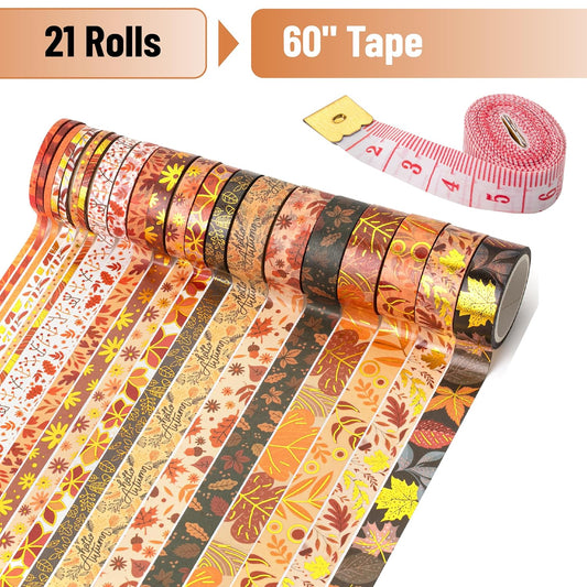 Mr. Pen- Washi Tape Set, 21 Rolls, Autumn Leaves, Decorative Tape, Washi Tapes
