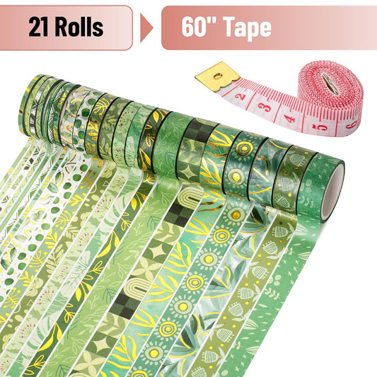 Mr. Pen- Washi Tape Set, 21 Rolls, Greenery Summer Design, Decorative Tapes with a Tape Measure
