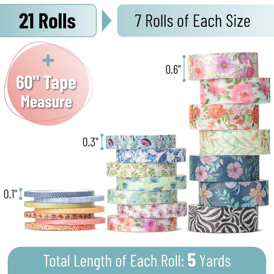 Washi Tape Set, 21 Rolls, Decorative Cute Floral Washi Tape for Bible Journaling, Bullet Journal Supplies