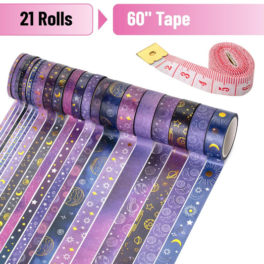 Mr. Pen- Washi Tape Set, 21 Rolls, Outer Space Design, Decorative Tape with Measure Tape