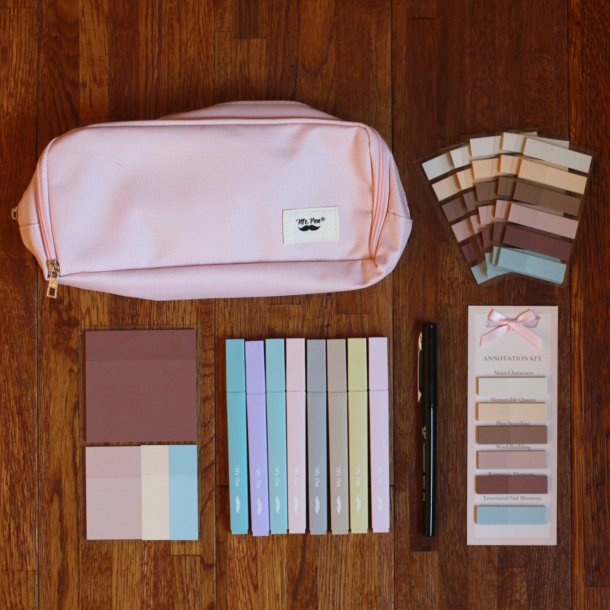 Mr. Pen – Annotation Essentials Kit for Book Lovers, Aesthetic Highlighters, Transparent Sticky Notes, Annotation Key Bookmark, Stickers & Pencil Pouch