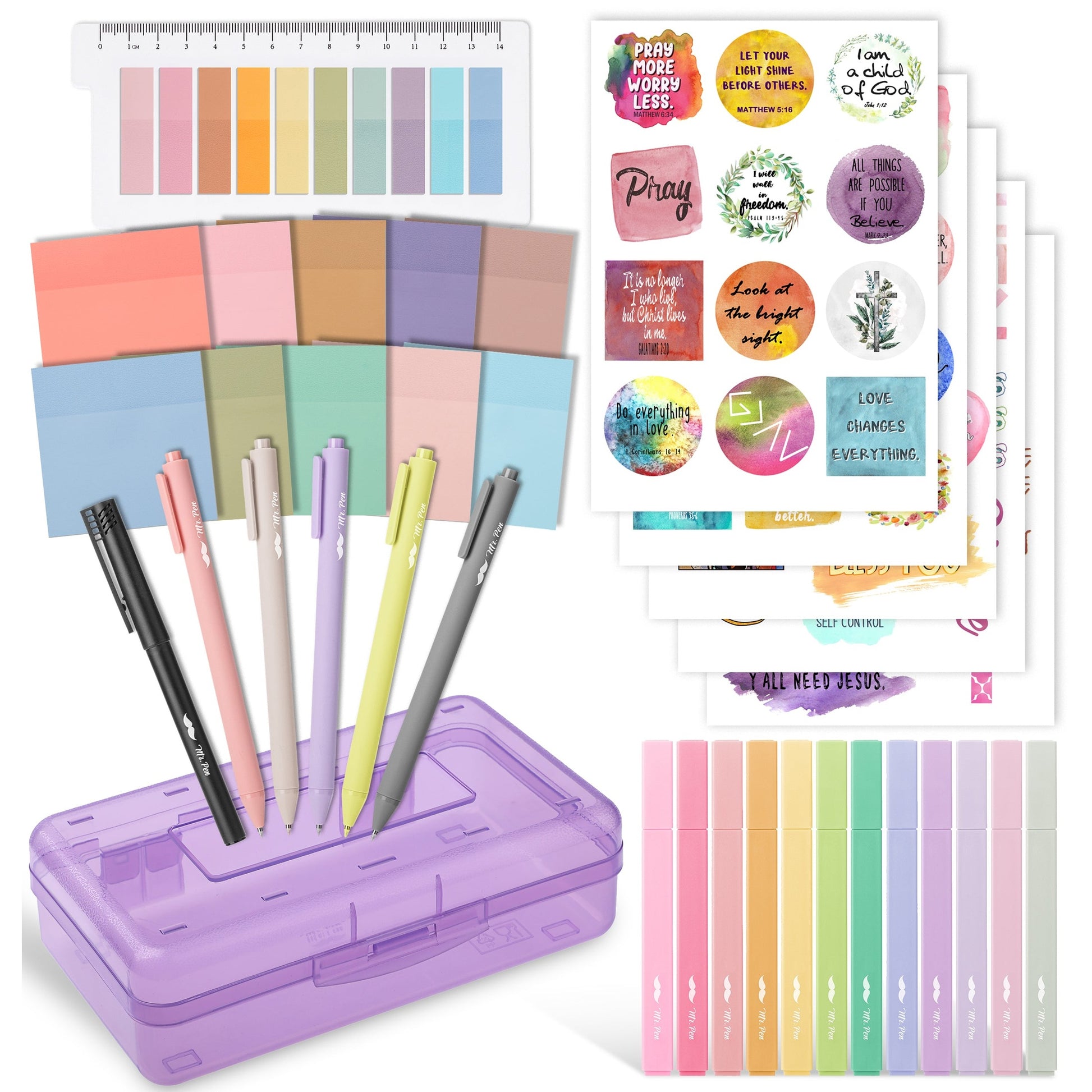 Bible Journaling Set – Gel Pens, Highlighters, Sticky Notes, Stickers & Pencil Case Options