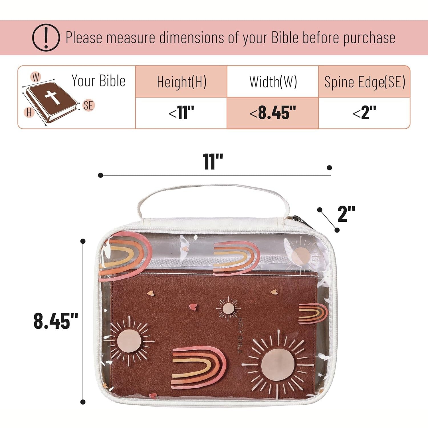 Clear Bible Case with Rainbow & Sun Design, Durable Zipper, Multiple Pockets