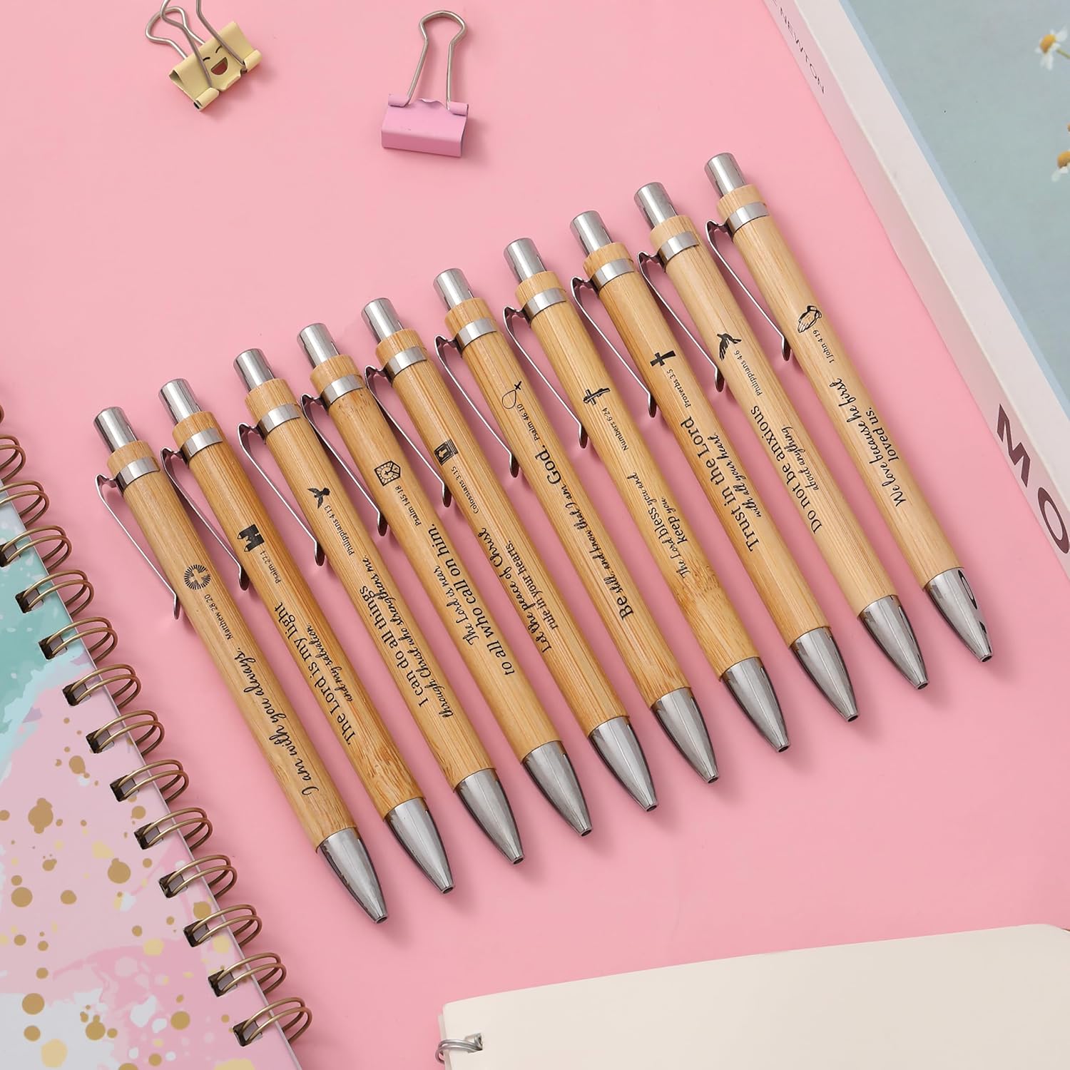 Mr. Pen- Bible Verse Pens, 50 Pack, Retractable Bamboo Pen, Black Ink, Christian Pens for Women Men