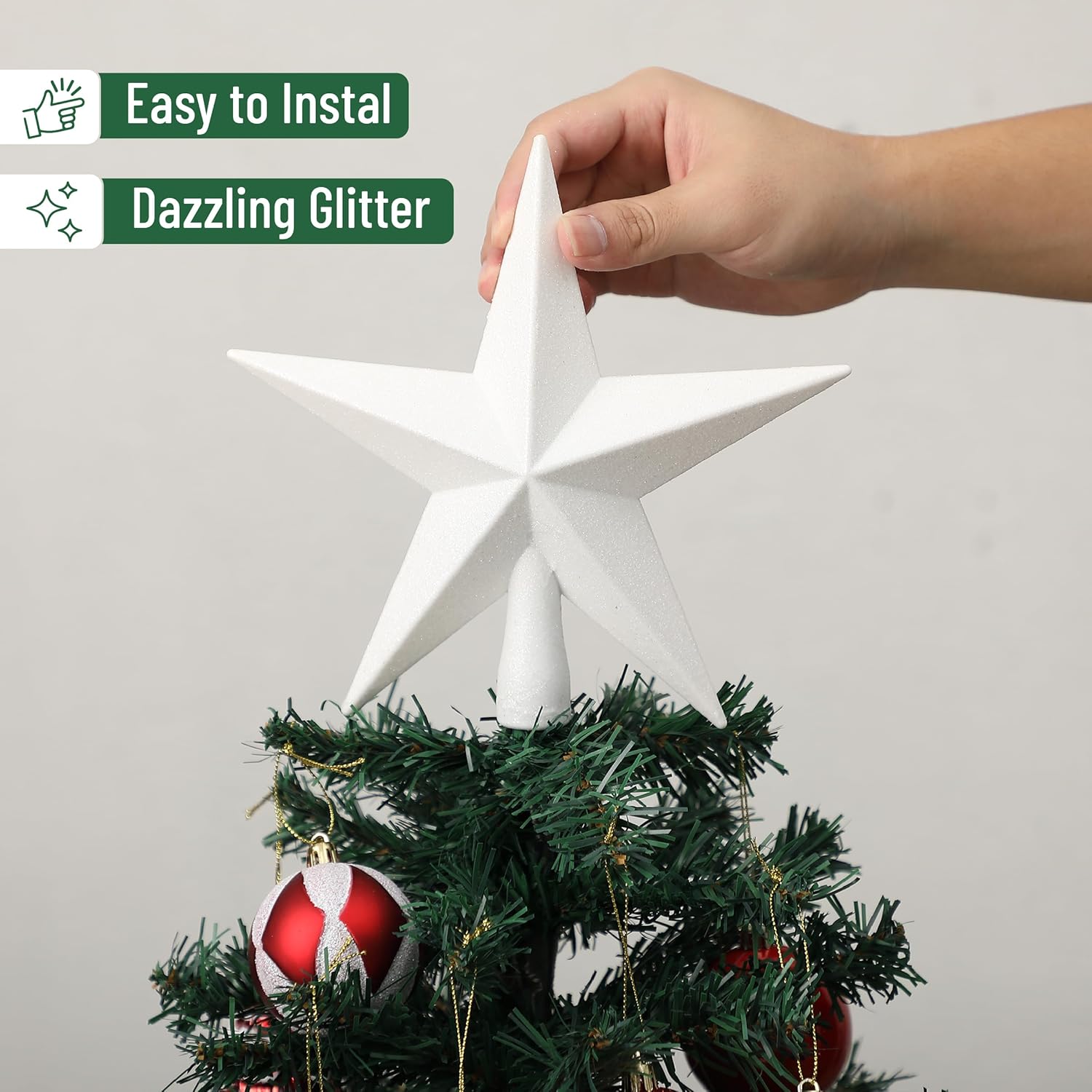Mr. Pen- Glitter Star Tree Topper, 8-Inch, White Star Christmas Tree Topper Star, Christmas Tree Star Topper