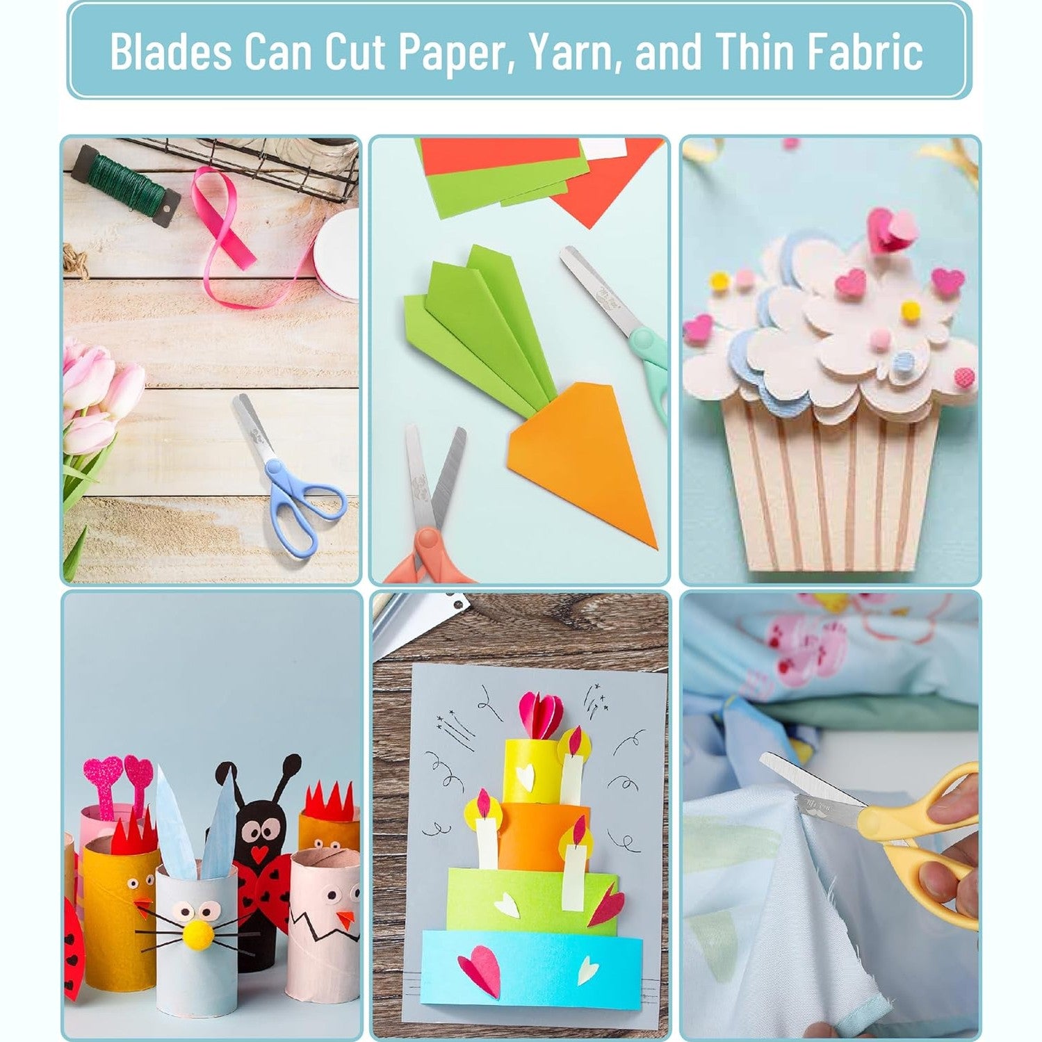 - Kids scissors 12 pack (5 inch) with blunt tips for safe cutting in classrooms, school projects, and crafts.