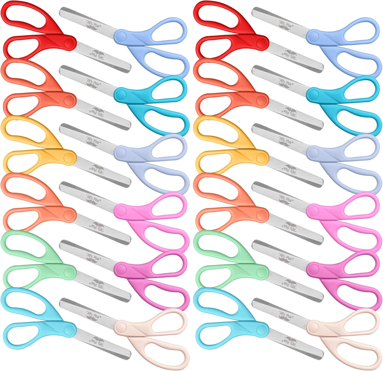 Bulk Kids scissors 24 pack (5 inch) with blunt tips for safe cutting in classrooms, school projects, and crafts.