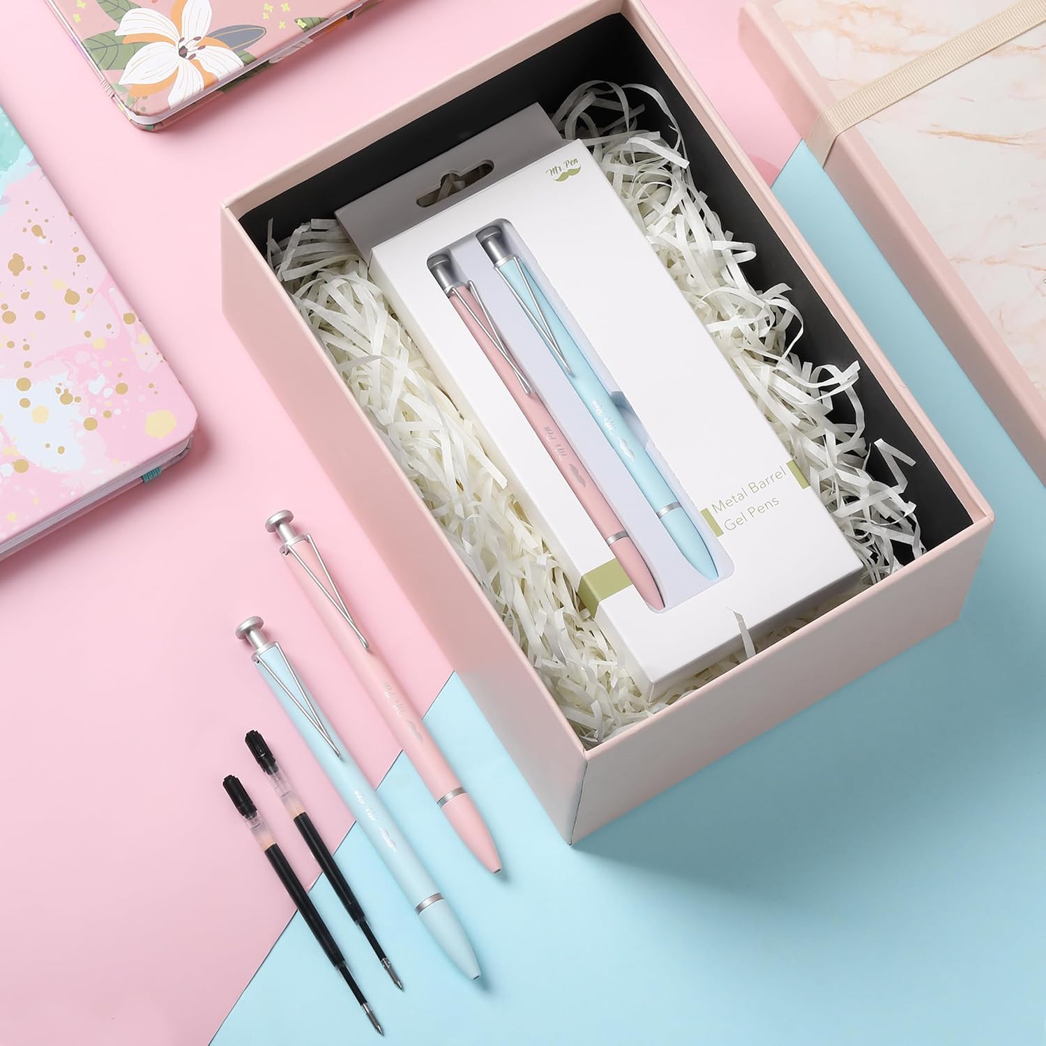 Mr. Pen- Metal Retractable Gel Pen, 2 Pack, 2 Refills, Blue & Pink, Black Ink, Metal Barrel Gel Pens Fine Point 0.7mm