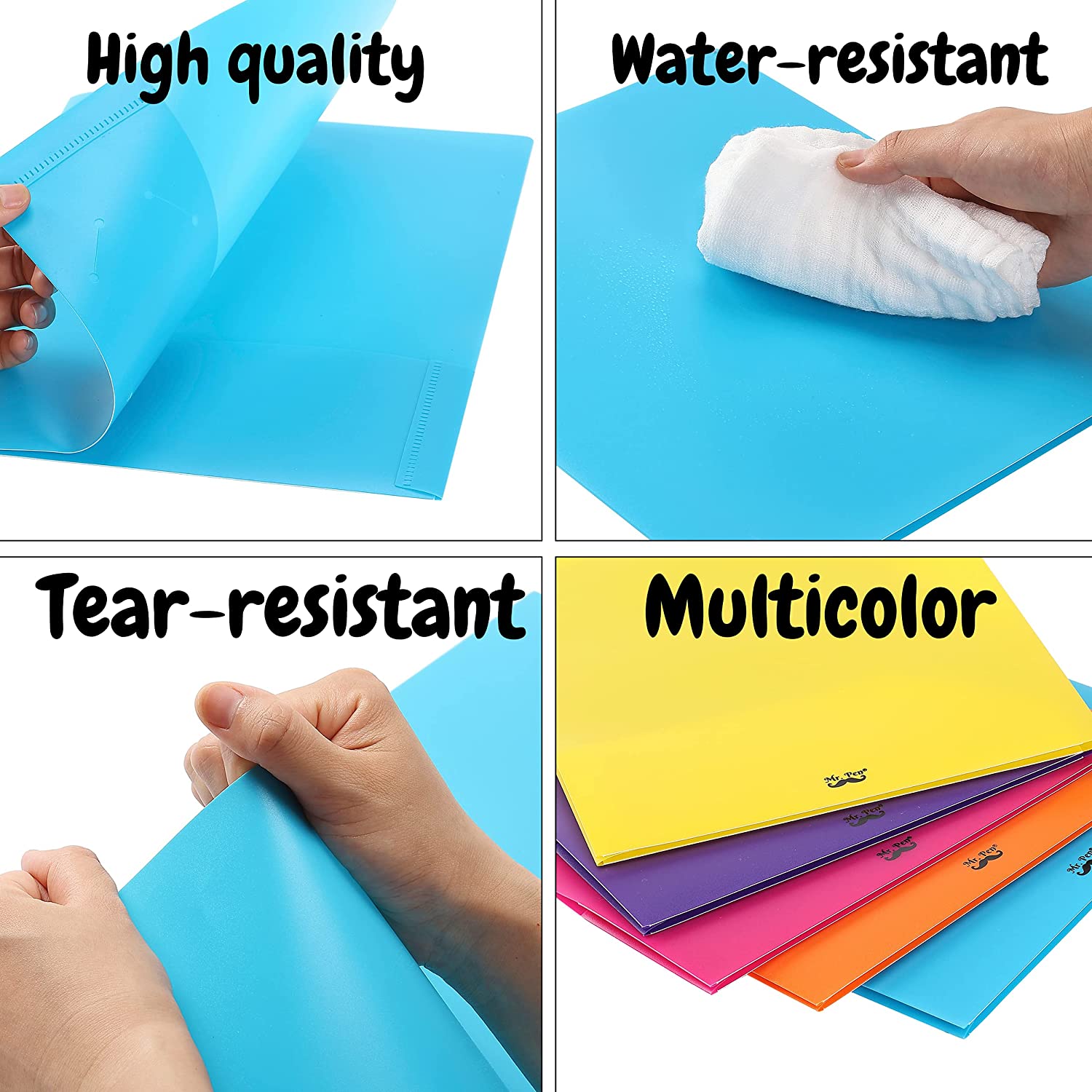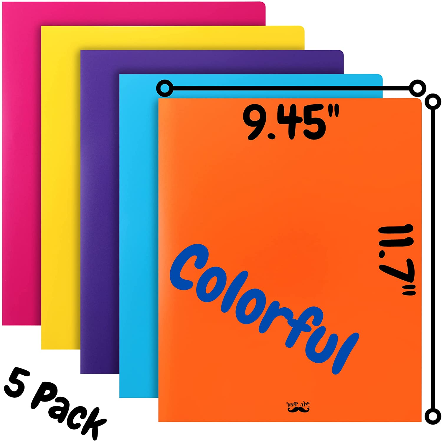 Plastic File Folders with Pockets, Heavy Duty 2-Pocket File Folders, Assorted Colors, 5 Pack